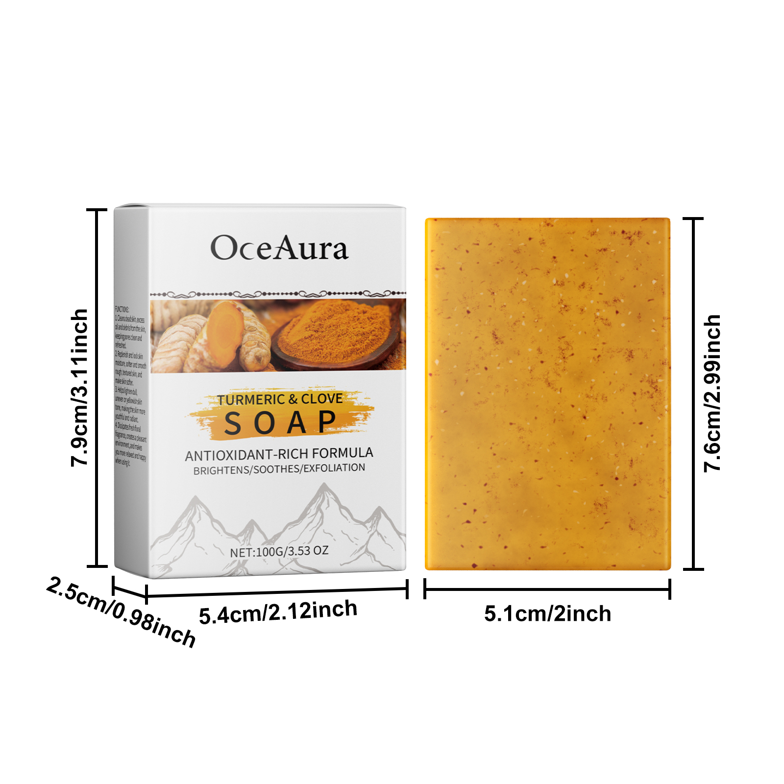 Our turmeric clove essential oil soap contains turmeric root extract, lilac flower extract. It can enrich the foam, remove the surface grease, and keep fresh. Effectively locks in moisture and moisturizes skin, improving skin moisture. The method of applying it is simple: wet the face or body with warm water, lather the soap with the palm of the hand, massage it into the skin in gentle circular motions, and finally, rinse the foam with warm water. And can be gently formulated to help exfoliate and help improve uneven skin tone.