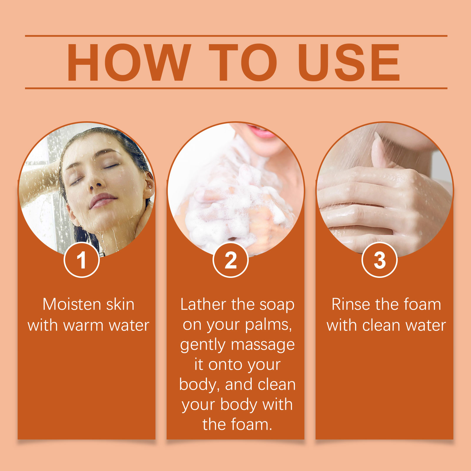 Our turmeric skin soap contains turmeric root oil, orange oil. It deeply hydrates, soothes skin and enhances elasticity. Its application method is very simple: wet the skin with warm water, lather the palm of the hand, gently massage the body, clean the body with foam, rinse the foam with water. And can increase the skin resistance to fade wrinkles, promote skin health.