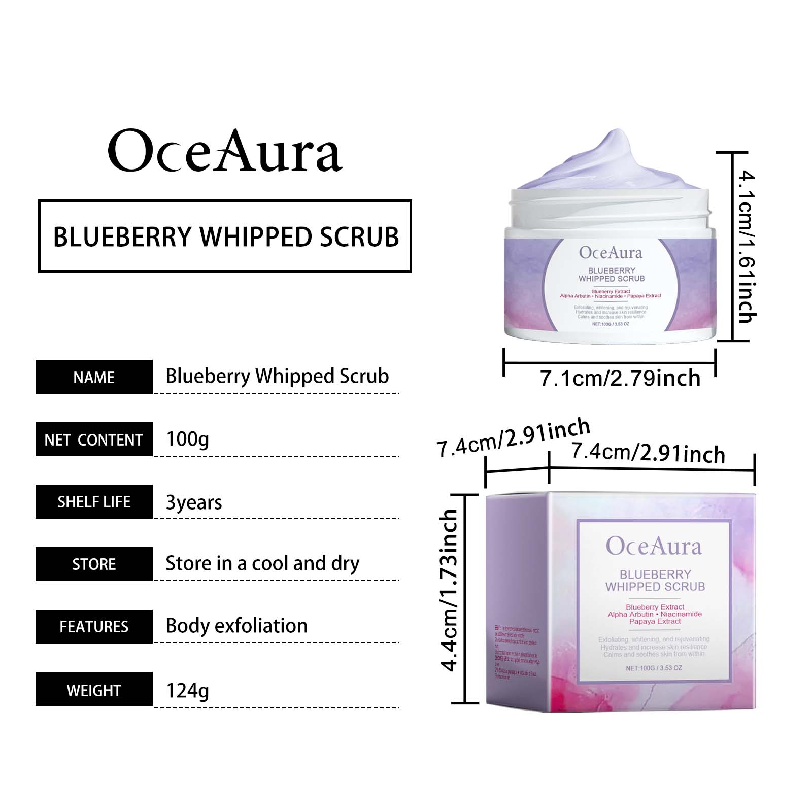OceAura Blueberry Whipped Scrub, Exfoliating Tender Lighten Body Dull Brightening Skin Scrub