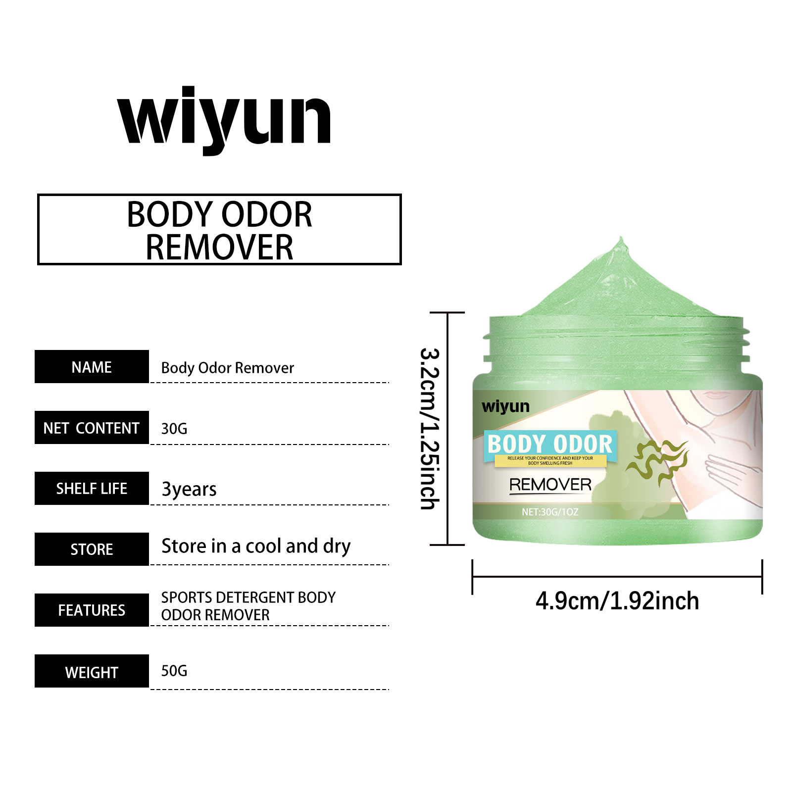 WIYUN Underarm Anti-perspirant Care Cream Cleans armpit sweat odor Refreshing and long-lasting body care cream
