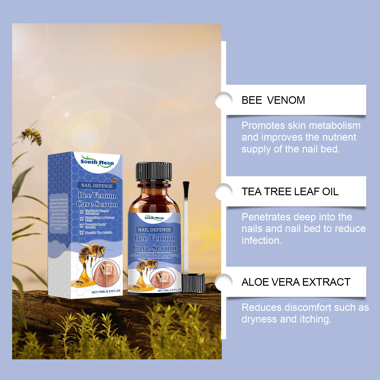 South Moon Bee Venom Nail Care Solution, Hand And Foot Nails Nutrition Gentle Cleaning And Repairing Manicure Surface Maintenance