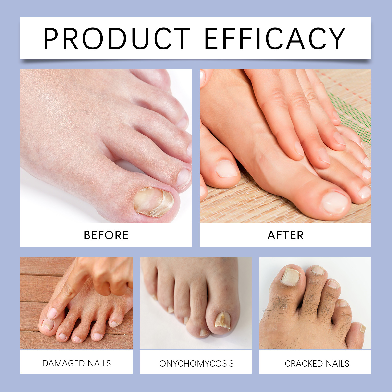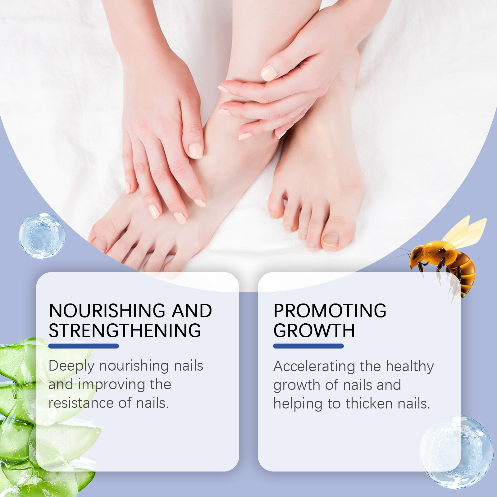 Our nail care solution contains Phellodendron extract, aloe leaf extract. It can deeply nourish nails and improve their resistance. Its use method is very simple: thoroughly clean the affected nail, and let it dry, apply an appropriate amount of this product evenly on the nail, wait 2-3 minutes before completely absorbed. And speed up nail thickening.