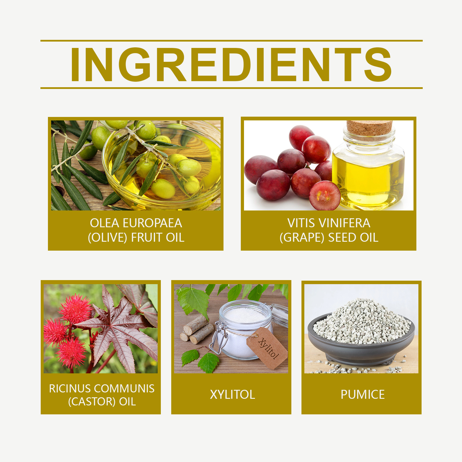 Our exfoliating scrub is carefully formulated with castor oil, xylitol and pumice. Designed specifically for nourishing the skin and repairing dry areas. The usage method is extremely convenient: 1. Wash and moisten the body skin with warm water. 2. Apply an appropriate amount of scrub on moist skin and massage in circular motions to promote the shedding of body keratin. 3. Use the same circular massage motion and rinse off the body scrub with warm water. And it can provide deep moisturizing and keep the skin soft.