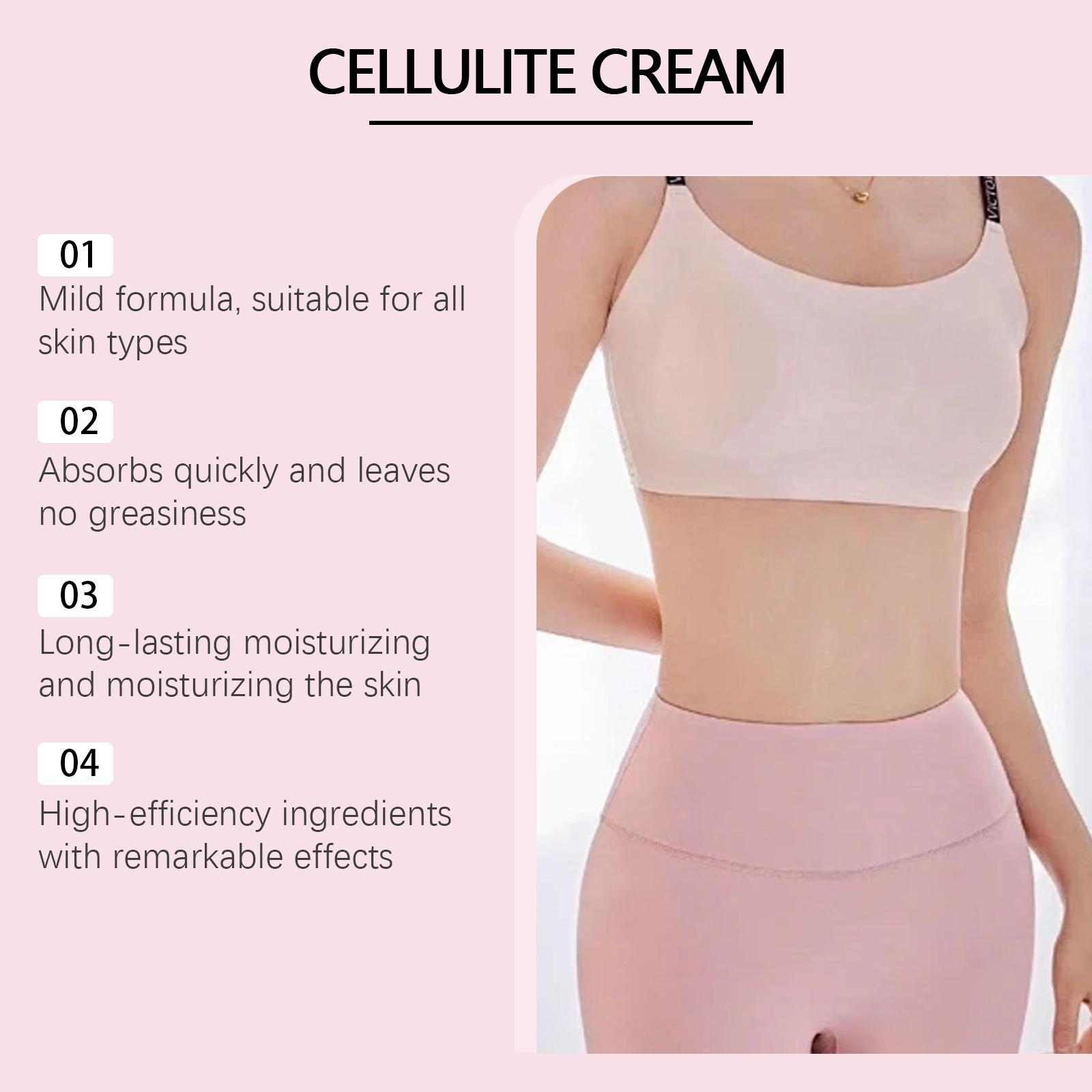 Our body massage cream contains shea butter and ginger root extract. It can be absorbed quickly, leaving no greasy residue and no burden on the skin. Its application method is very simple: clean the body skin, keep dry, apply appropriate amount of this product evenly on the abdomen, legs, arms and buttocks, gently massage until completely absorbed. And can deeply nourish the skin, improve skin smoothness.