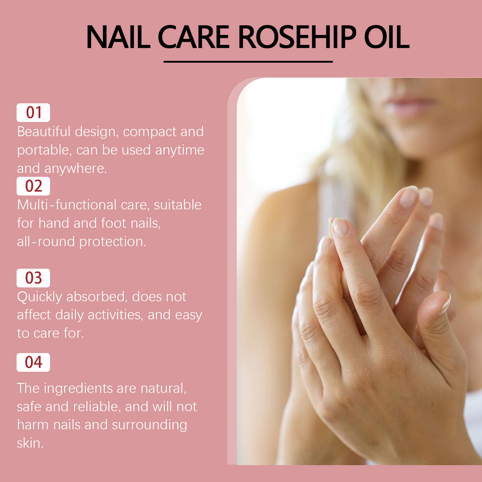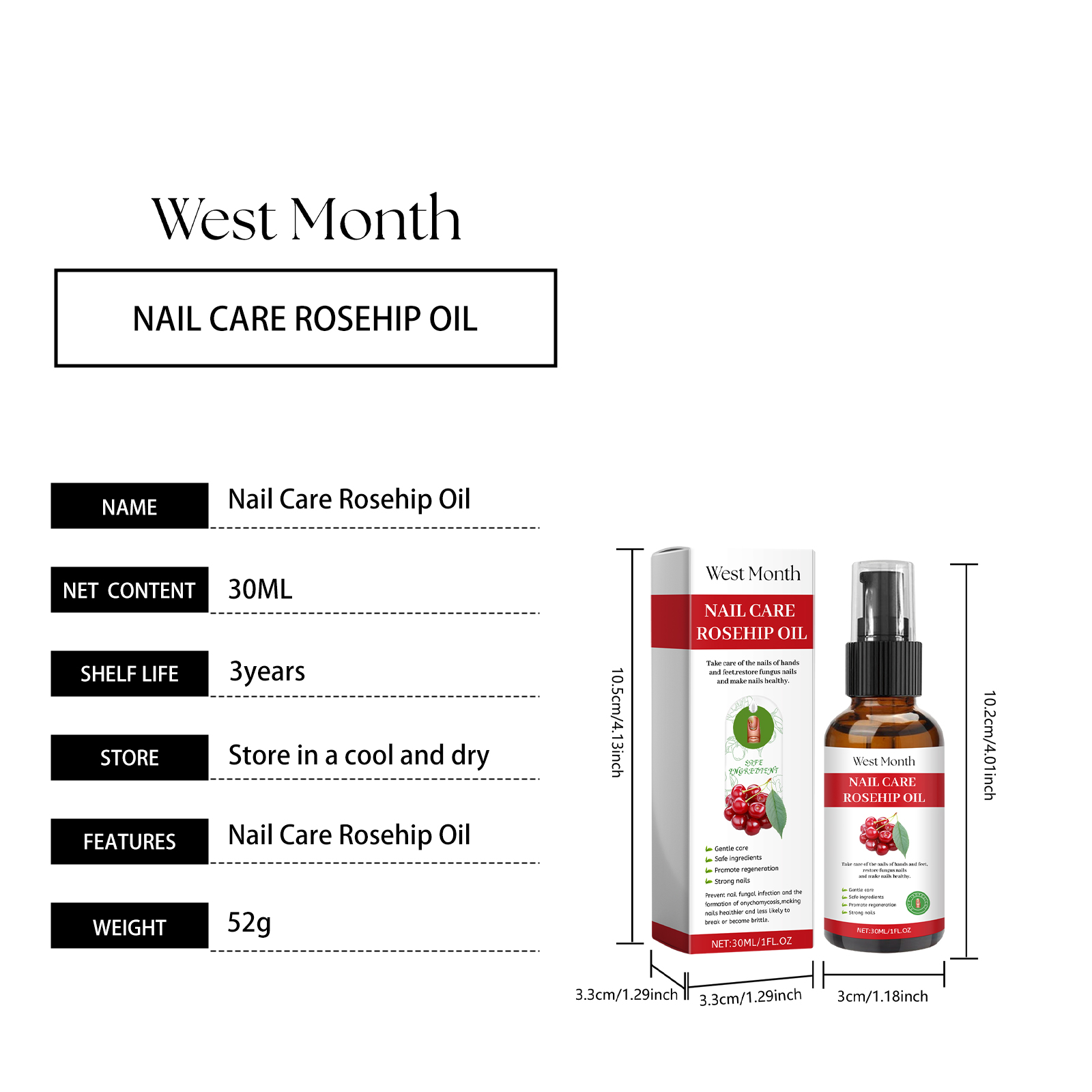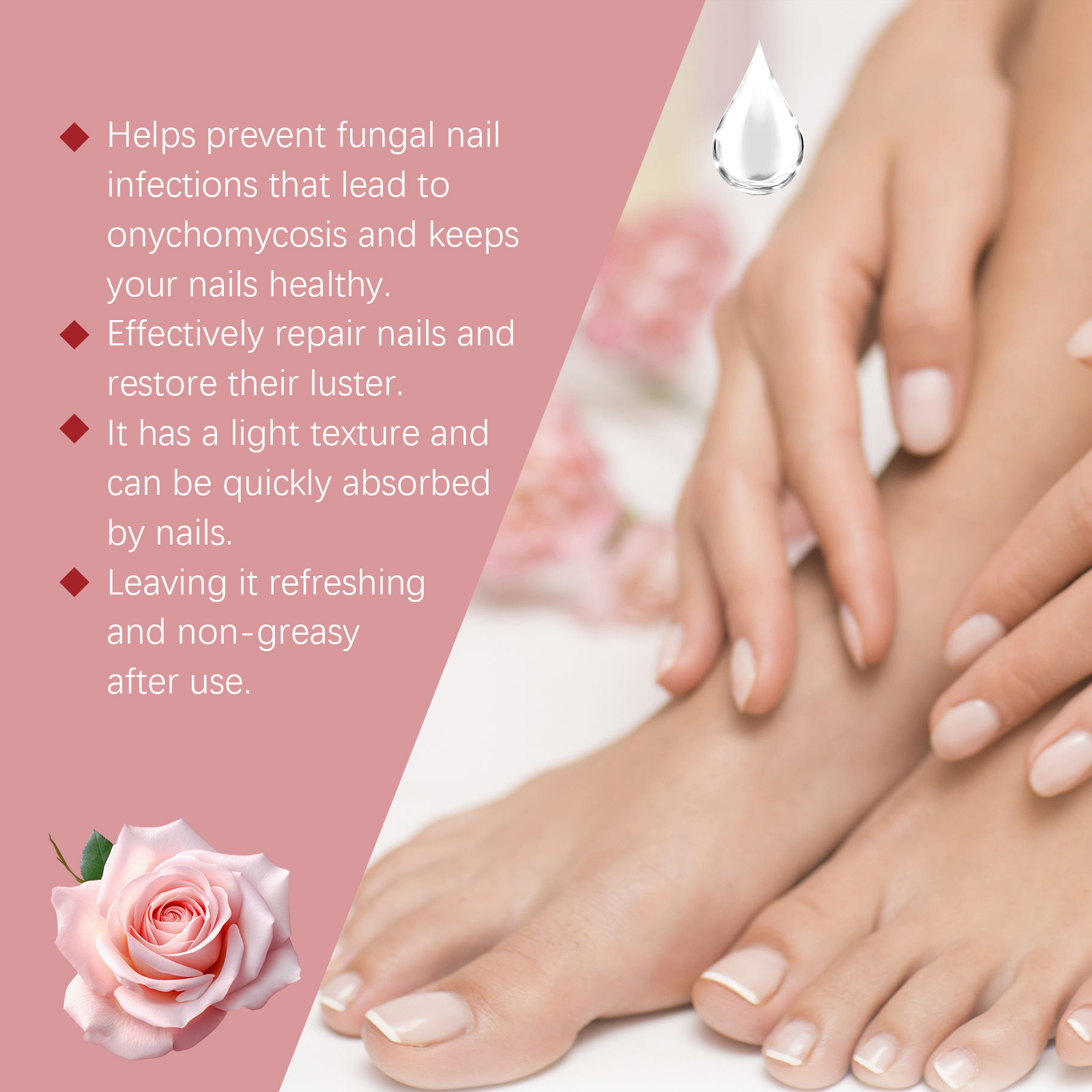 Our nail care solution contains rosehip oil, tocopherol (vitamin E), glycerin. It can nourish and repair snails. Antioxidant protection, enhance nail toughness; Moisturize deeply to keep your nails and surrounding skin hydrated. Its use is simple: 1. Clean your nails and keep them dry; 2. Apply appropriate amount of the product to the affected nail; 3. Gently massage into nail bed for complete absorption. Highly effective formula, quickly improve nail condition, easy to use. Provides deep nutrition to help preserve healthy nails and provides comprehensive care.