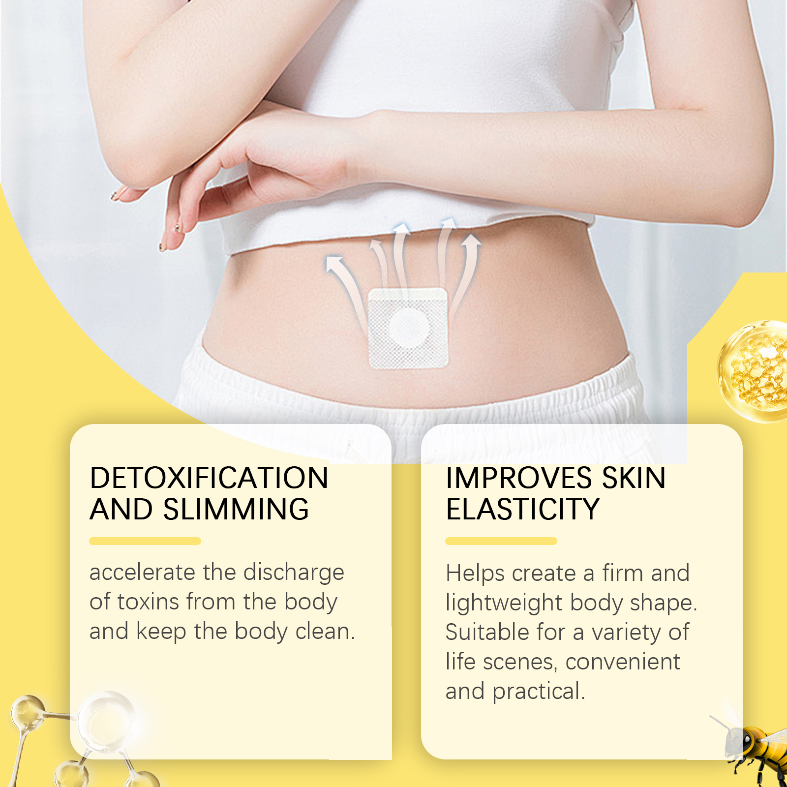 Our bee Venom Body Slimming patch contains bee venom, citrus peel extract, safflower extract. It can be fast and effective, promoting detoxification and weight loss. Improve skin elasticity and firmness, reduce relaxation; Long-lasting weight loss and improved gastrointestinal health. Its application method is simple: 1. Wash and dry the abdomen skin and remove the patch. 2. Place the patch on your belly button, making sure the patch is in close contact with your skin. 3. Wait 6-8 hours before peeling off the patch. Bee Venom Body Slimming Patch accelerates the elimination of toxins from the body and keeps the body clean. Helps create a strong, light figure. Suitable for all kinds of life scenes, convenient and practical. Designed to provide comprehensive shaping solutions for consumers who pursue healthy living.