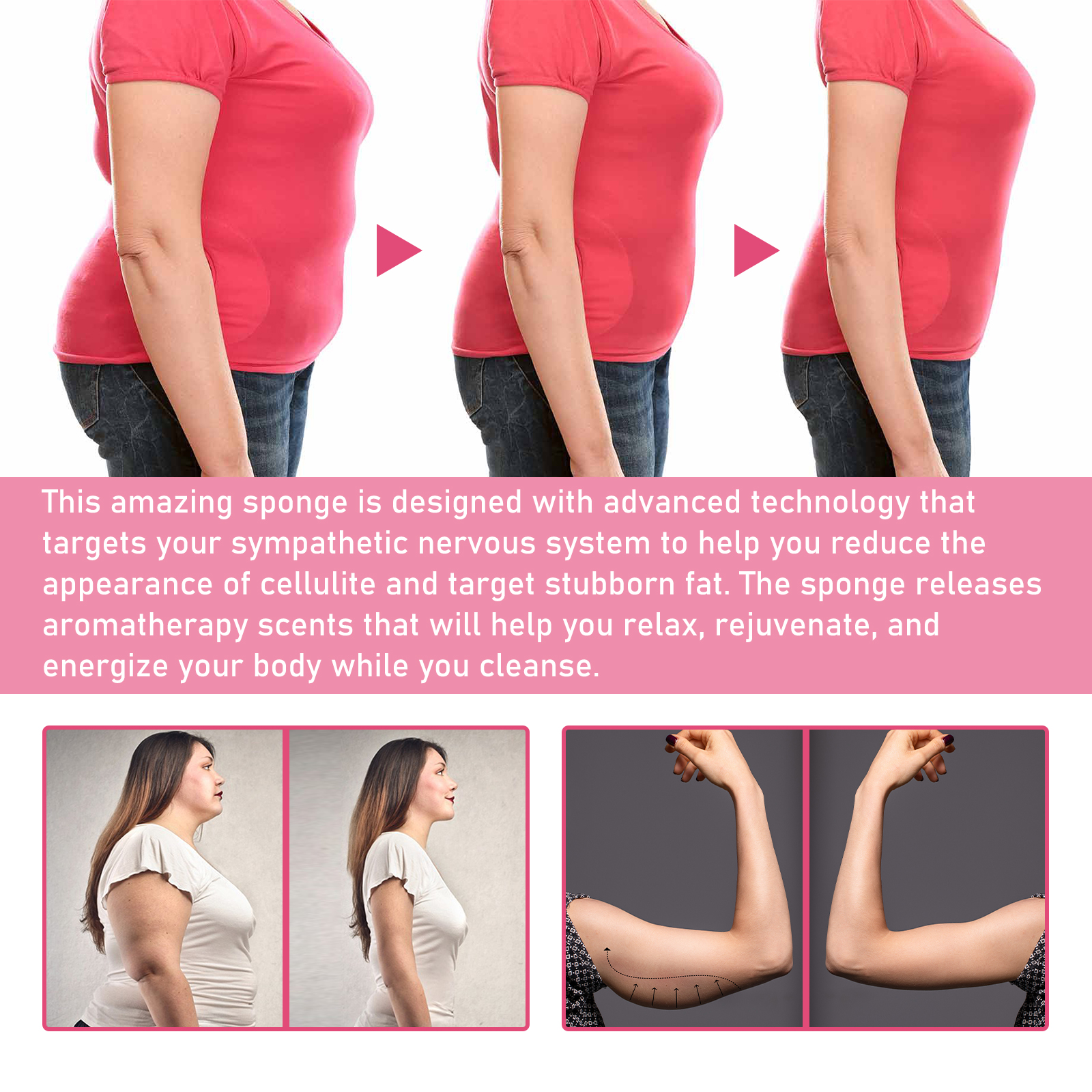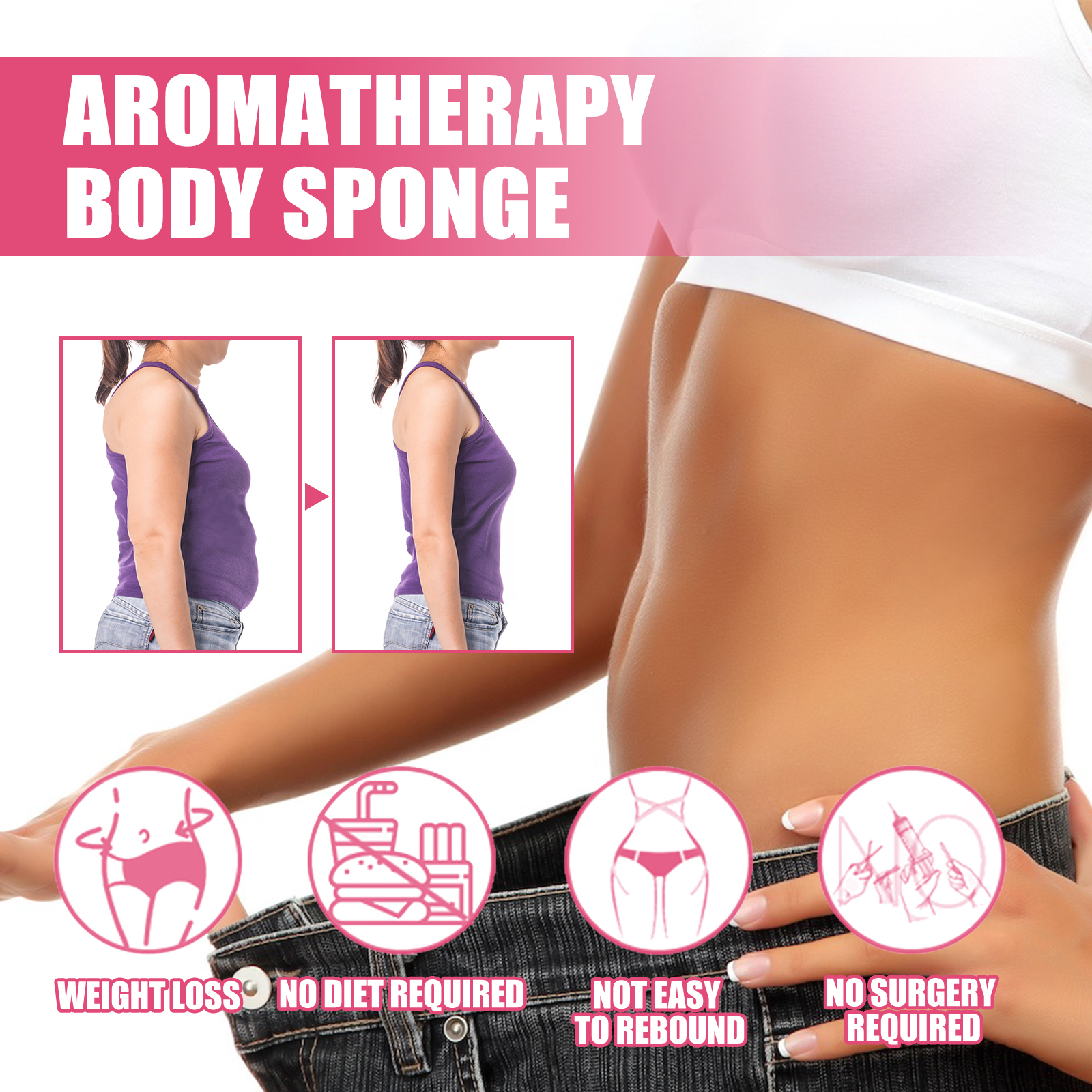 Our aromatherapy body sponge contains shea butter, glycerin, lotus extract. It can feel the skin gradually firming, laying the foundation for fat reduction, deep burning fat, gradually see the changes in the body, and the weight loss effect can be seen by the naked eye. It's easy to use: the soap is already in the sponge, so you just add water, squeeze out a frothy cleaner, and start scrubbing. And it tightens the body skin.