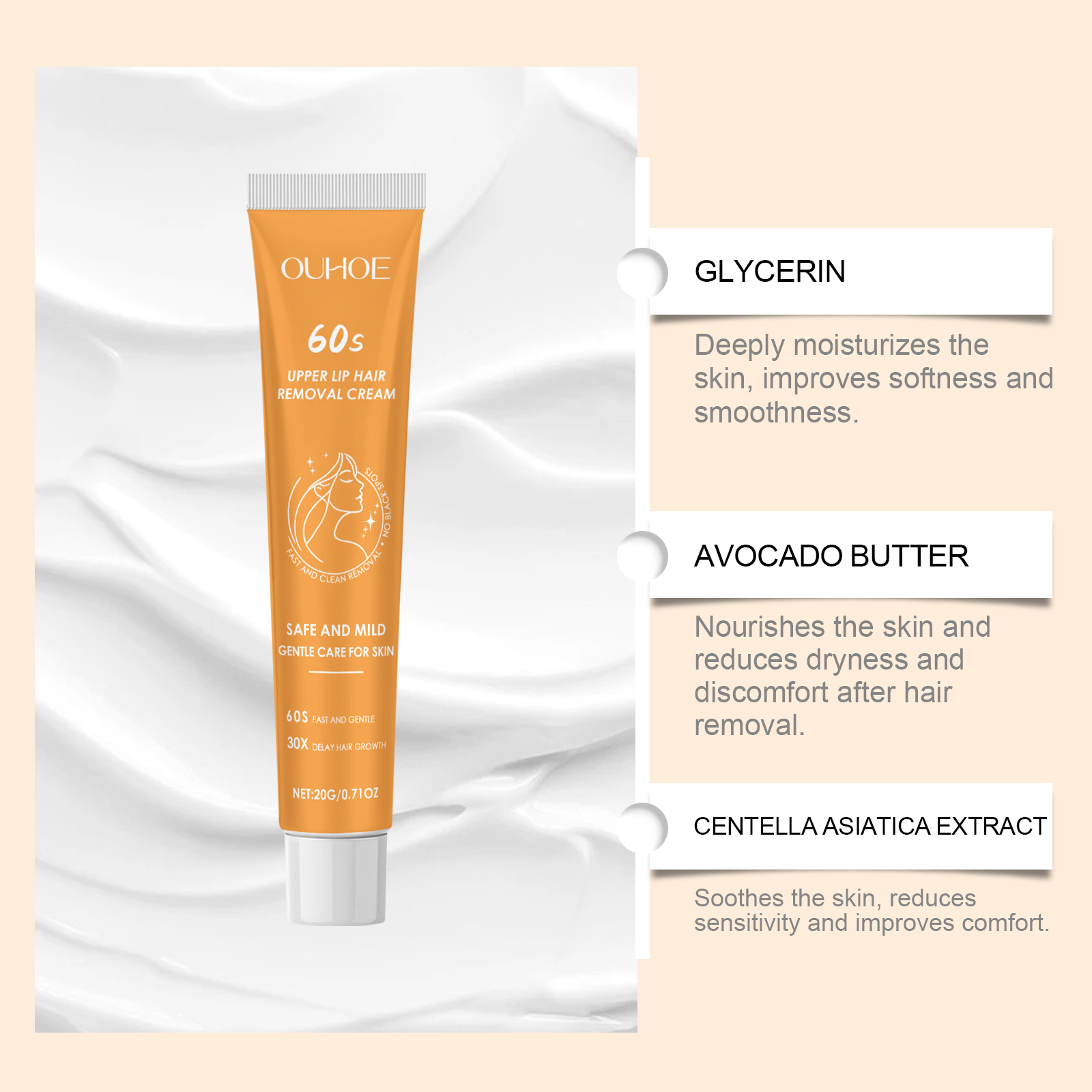 OUHOE Body Facial Hair Removal Cream, Gently Cleanses And Moisturizes Smooth Skin Without Irritating Hair Removal Cream