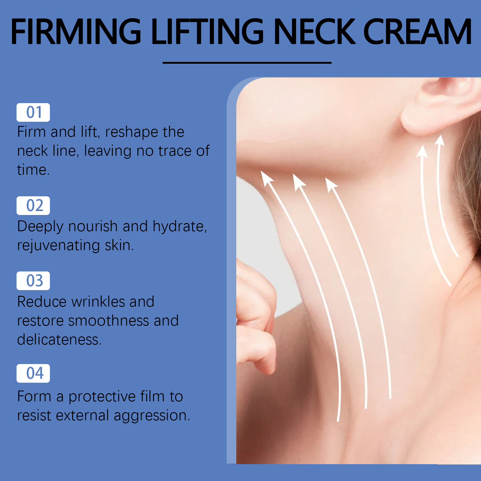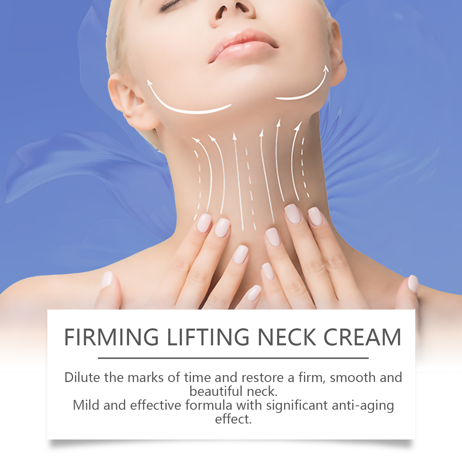 Our firming neck cream contains vitamin E, hydrogenated olive oil. It can restore a firm, smooth, beautiful neck. Its application method is very simple: clean and dry neck skin, take appropriate amount of neck cream, evenly apply to the neck, gently massage until absorbed. And light texture, absorption is fast and not greasy, suitable for daily use.