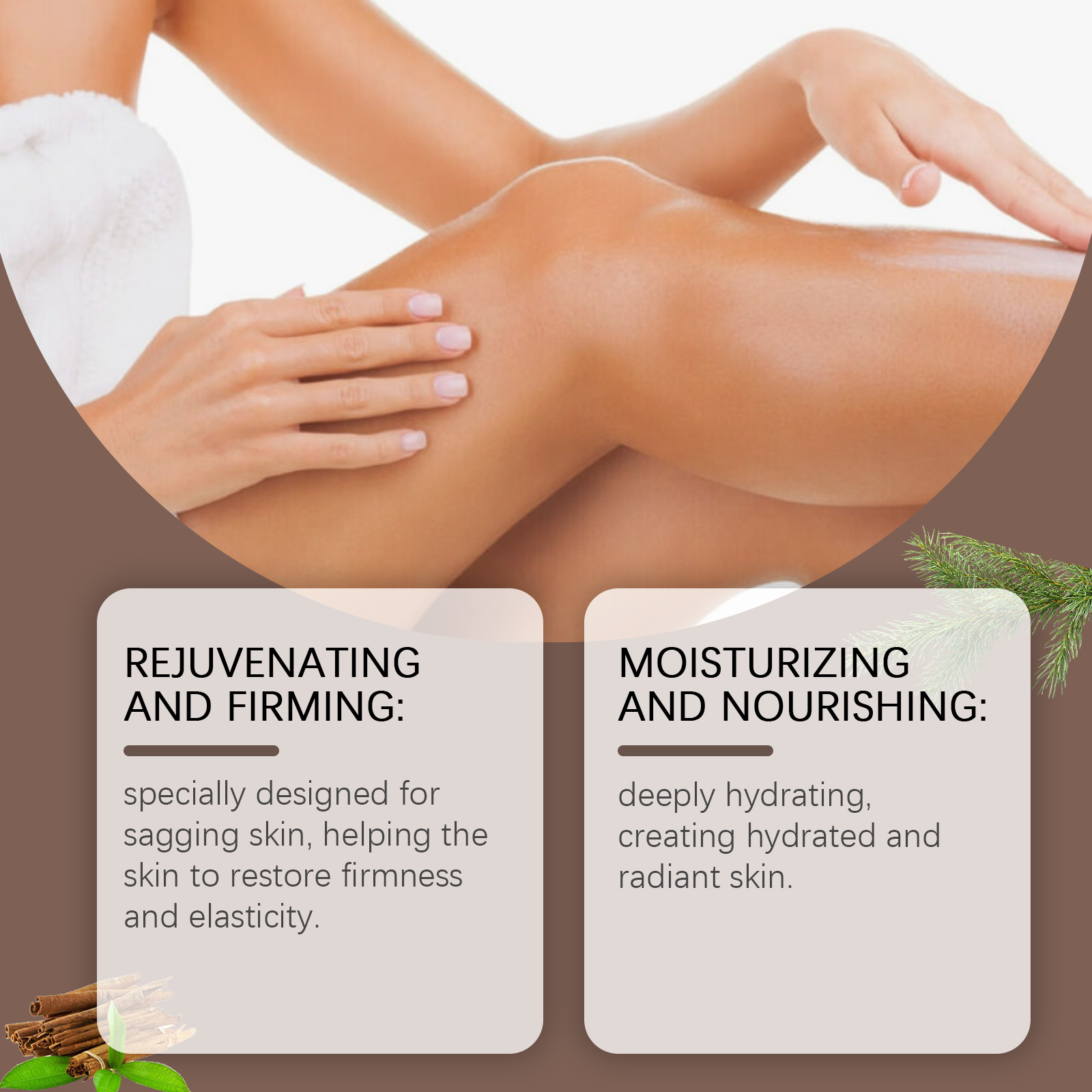 Our body moisturizing cream contains cedar wood oil and vitamin E (tocopherol), which effectively protects the skin from environmental damage and keeps it soft and smooth. Its application method is very simple: clean the skin, keep the skin dry, take an appropriate amount of cream, evenly apply to the body skin, gently massage in a circular motion, so that it is completely absorbed. It is specially designed for loose skin to help restore firmness and elasticity.