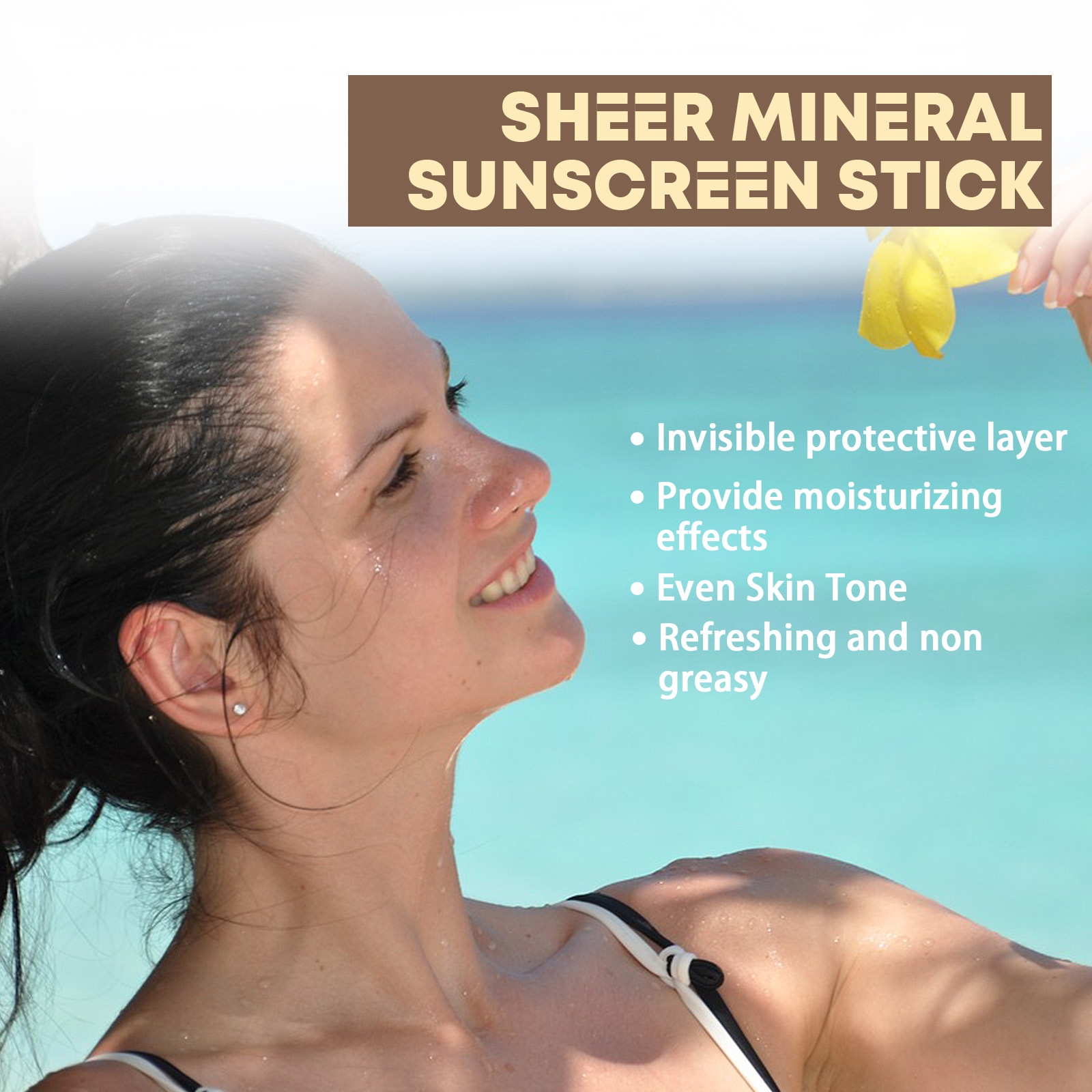 Our hydrating stick contains collagen, titanium dioxide. It forms an invisible protective layer, provides moisturizing effect, and even skin tone is fresh and non-greasy. Its application method is very simple: clean the skin and keep dry, take appropriate amount of this product evenly applied to the skin. And it protects against UV rays.