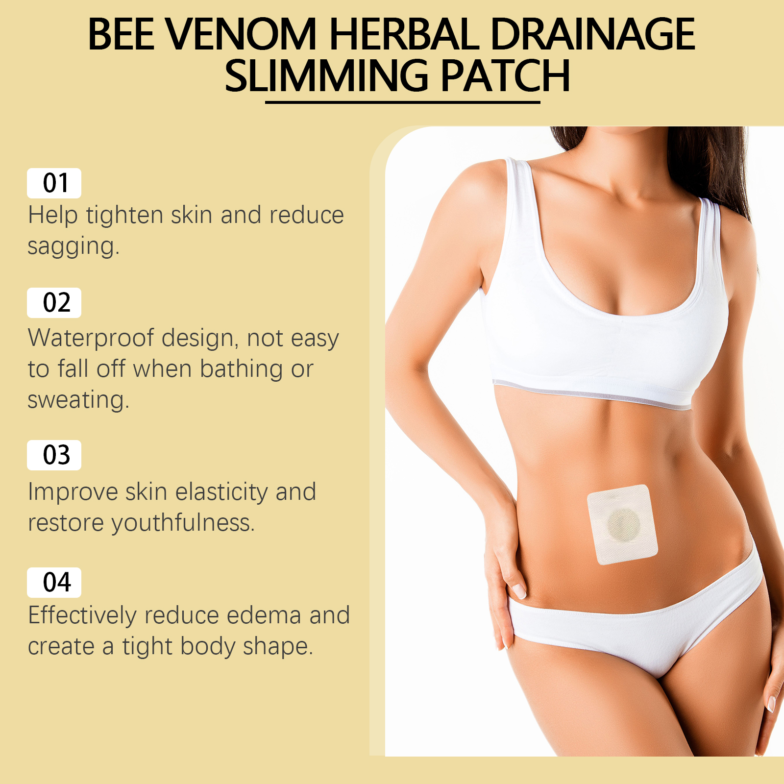 Our bee-venom slimming patch contains honey and mugwort extract. It can improve skin elasticity, restore youthful vitality, effectively reduce edema, and create a tight body shape. The way to use it is simple: clean the skin. Then take out the slimming patch, peel off the protective film, and then put the slimming patch flat at the navel for 6-8 hours, and then gently tear off. And the ingredients can be released slowly, ensuring effectiveness over time. For waist, abdomen, thighs and other parts, effectively shape the body.