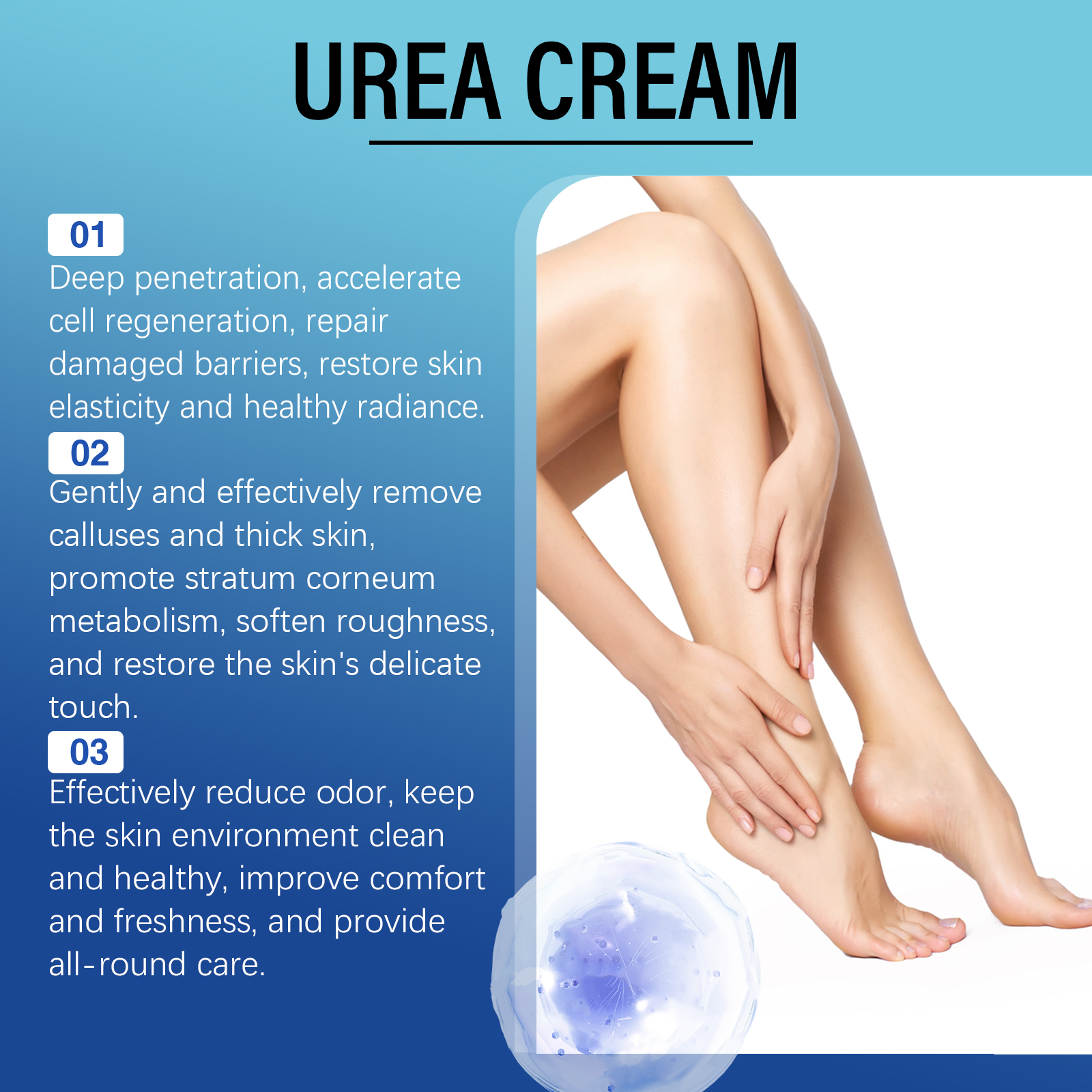 Our moisturizing and anti-cracking foot cream contains urea and mineral oil. It can restore skin softness by moisturizing factors; Effectively hydrates, forms a moisturizing barrier, locks in moisture; Gently removes dead skin and promotes cell renewal. Its use is simple: 1. Clean and dry the skin of your feet and other parts of your body; 2. Apply a moderate amount of sunscreen to your feet and other parts of your body; 3. Gently massage until absorbed. Especially suitable for dry, cracked hands and feet, quickly relieve discomfort. Fresh and bright, no special cleaning is required after use.