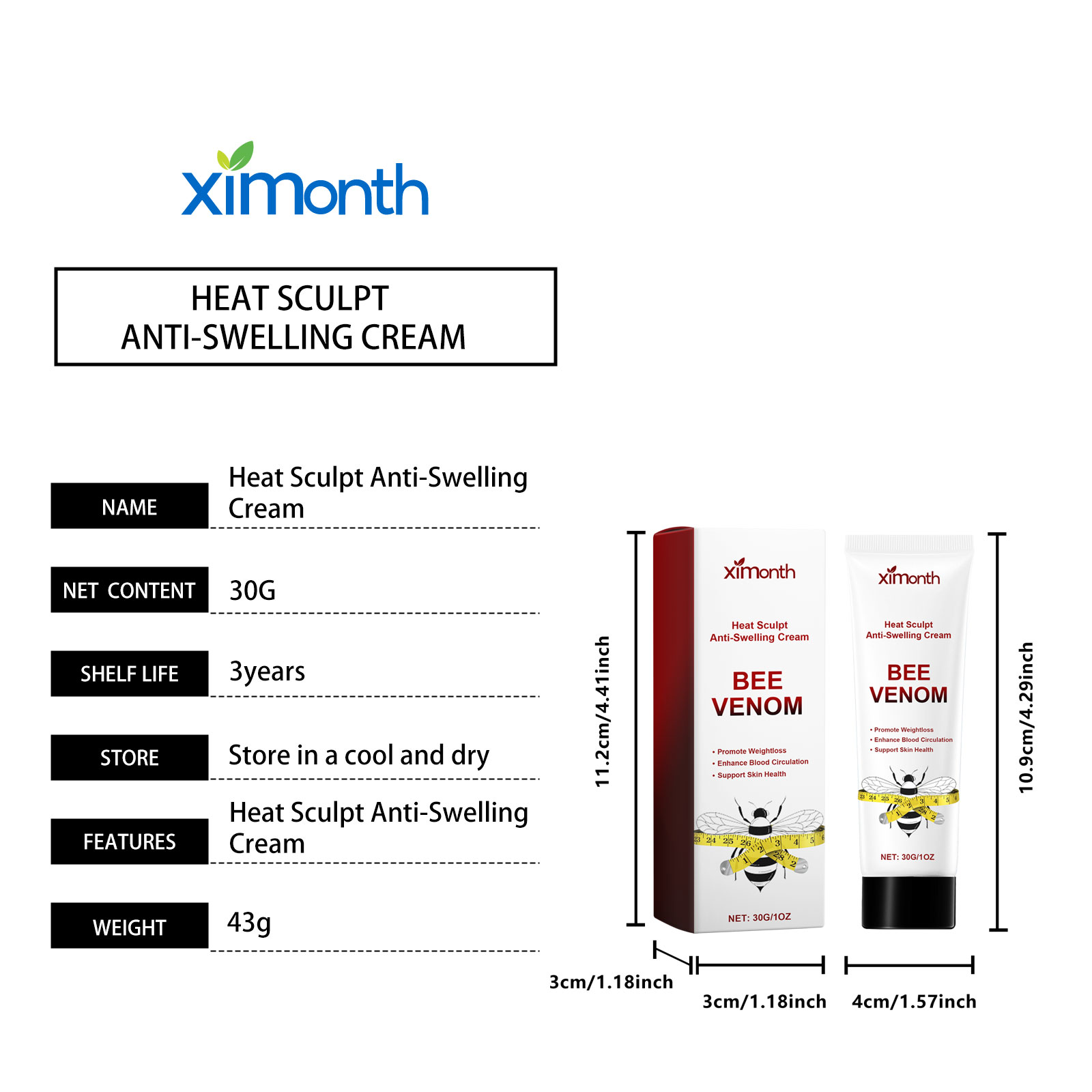 Home > Ximonth Heat Sculpt Anti-Swelling Cream, Firming Arms Belly Beauty Legs Show Curves Massage Body Sculpting Cream