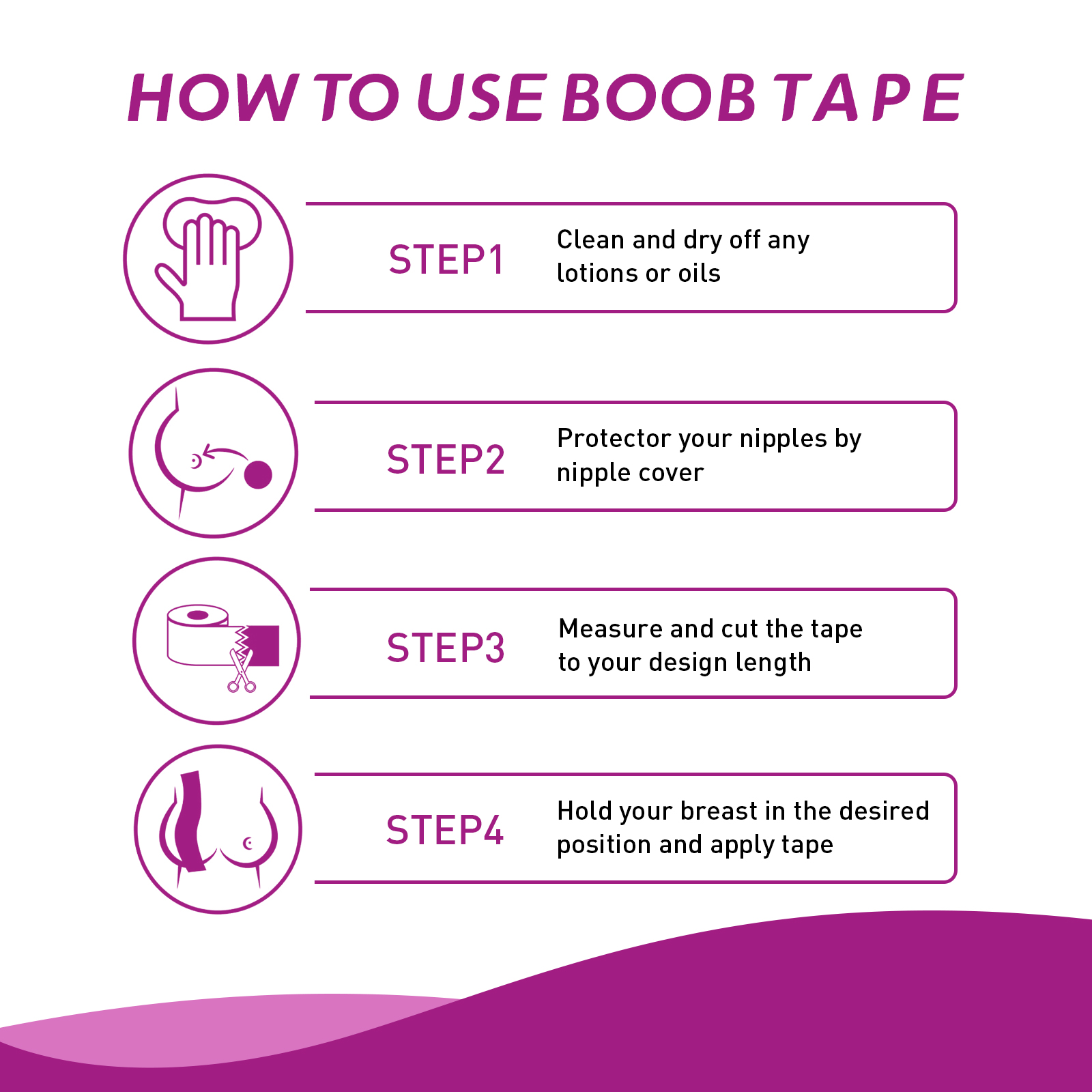 Our invisible breast lift tape contains high quality non-woven fabric, silicone. It can lift and gather the chest, anti-exposure sagging, breathable and invisible, suitable for various occasions, it is easy to achieve the chest shape you want, natural appearance and invisibility, hypoallergenic soft and comfortable, its use is very simple: Wash and dry any lotions or oils, protect your nipples with nipple covers, measure and cut to the length you designed, hold your breasts where you want them, and tape them. Enhance Perfect cleavage for all breast sizes, use in a variety of ways, use professional-grade fabrics, anti-sweat lift.