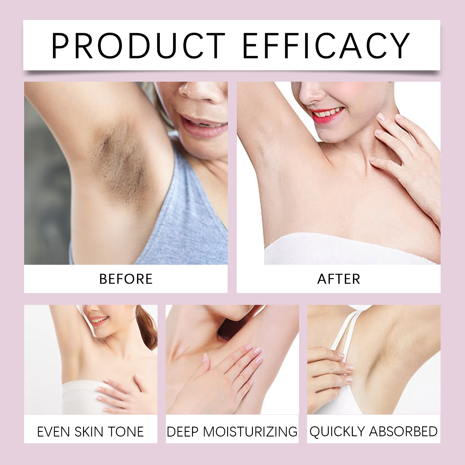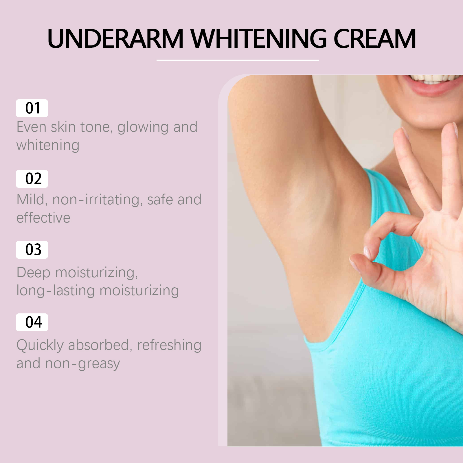 Our beauty cream contains cetyl alcohol and sodium hyaluronate. It improves the texture of the skin, leaving it smooth and delicate to the touch. Reduce pigmentation and even out skin tone. Its use method is very simple: take an appropriate amount of underarm brightening cream on the palm, evenly apply to the armpit, gently massage to promote absorption. It can also improve the skin tone of the armpits and make the skin brighter.