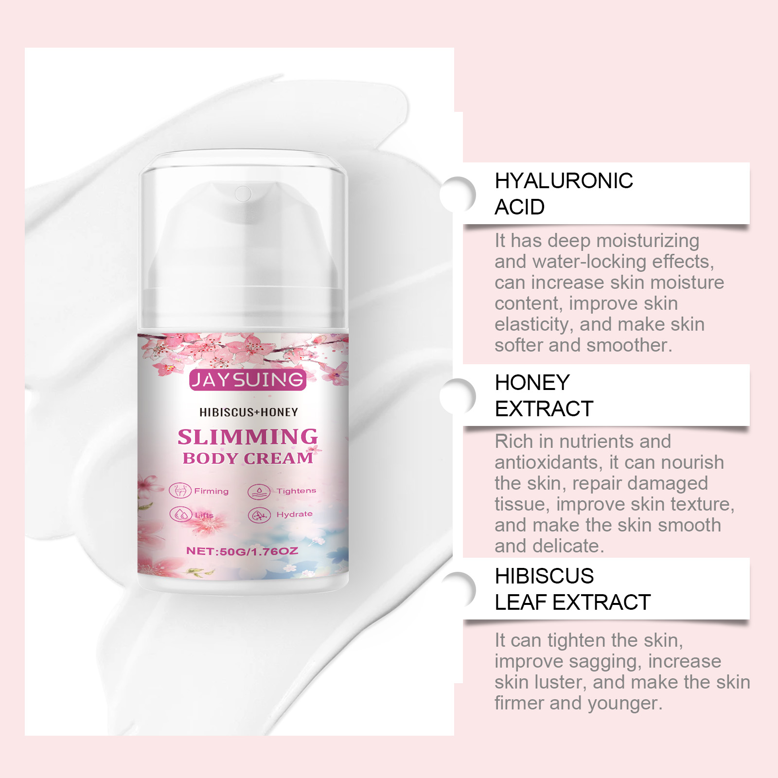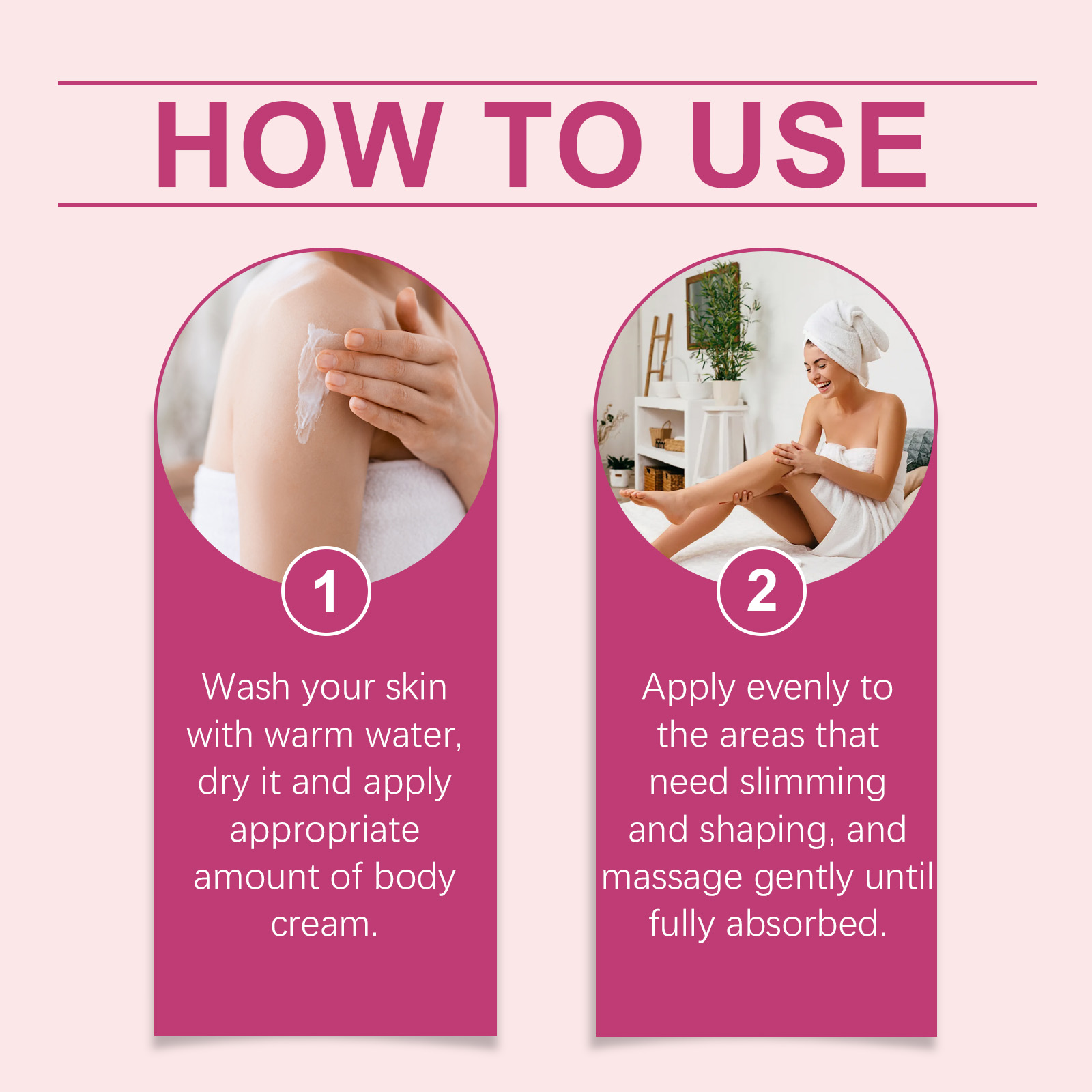 Our body shaping cream contains hyaluronic acid, honey extract, Jojoba leaf extract. It can penetrate deep into the skin and regulate it from the inside to help you shape the perfect body. It can also penetrate into the skin with just a gentle rub and work quickly to make your skin firm and smooth. Its use is simple: 1. Wash the skin with warm water. After drying, apply some cream. 2. Evenly apply to the parts that need to be slimmed and shaped, gently massage until completely absorbed. Body shaping cream has the function of long-term moisture retention, keeping skin moisturized for a long time, and keeping skin soft and smooth.