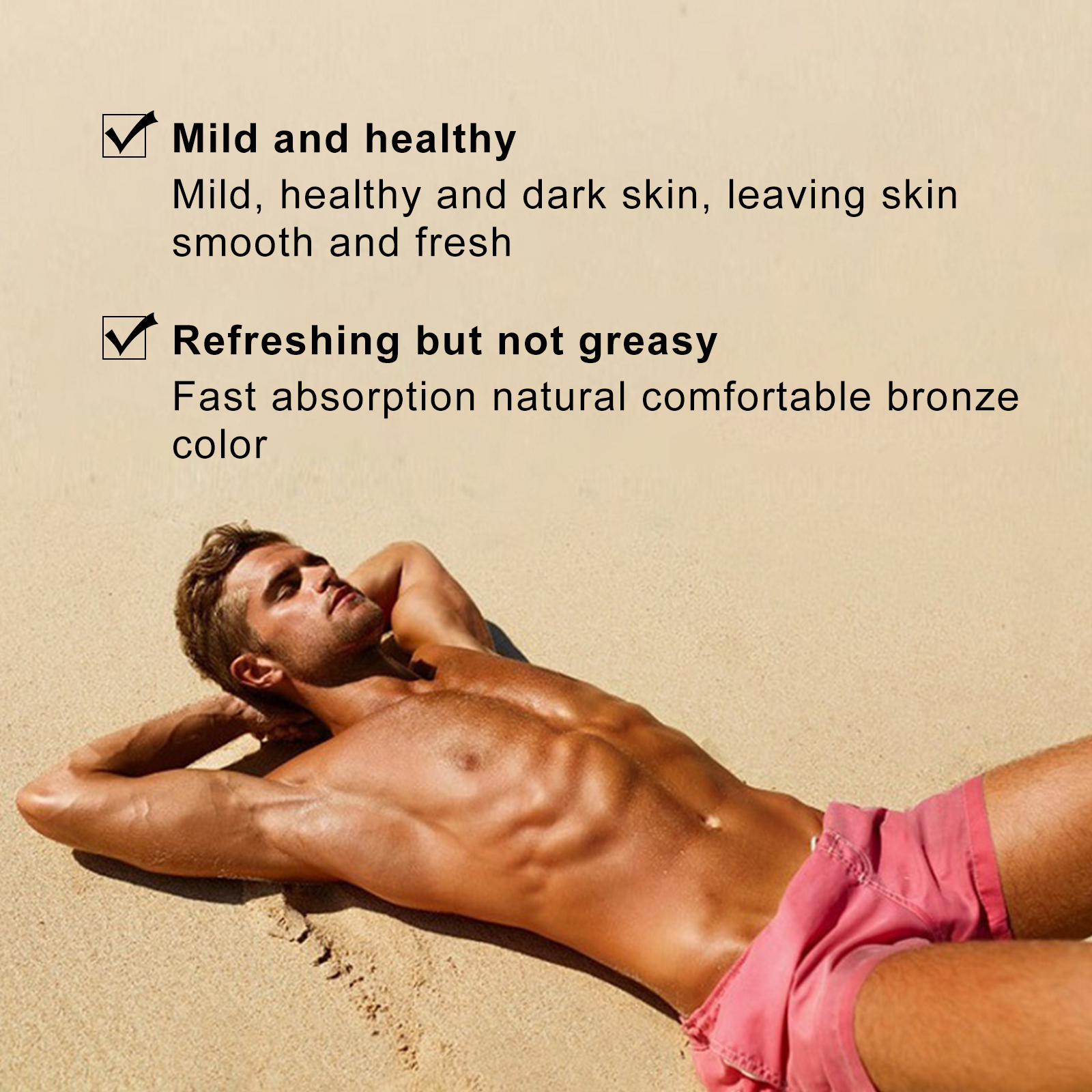 Our black cream contains water, carrot seed oil. It can make skin gentle, healthy, tan, make skin smooth, refreshing and not greasy, and quickly absorb natural and comfortable bronzer. The way to use it is simple: each use interval of at least 3 hours, after reaching the desired level of tan, reapply 1-2 times a week to maintain the color of tan. And can enhance the skin color.